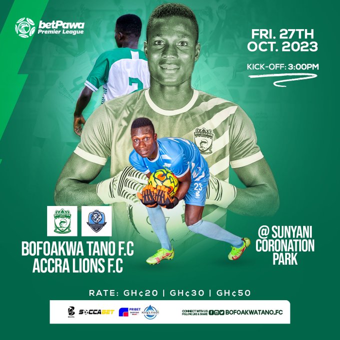Bofoakwa Tano will host the Accra Lions for game week seven of the betPawa Premier League at the Sunyani Coronation Park.