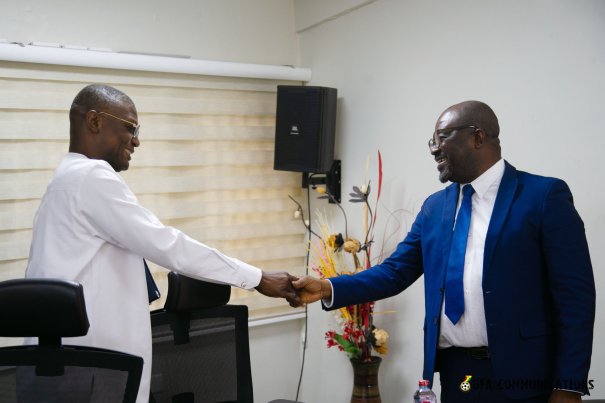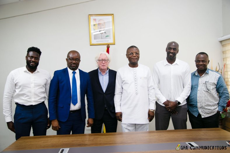 Ghana Football Association President, Kurt Okraku led the newly constituted Black Stars technical team to pay a visit to the Sports Minister, Hon. Kofi Adams.