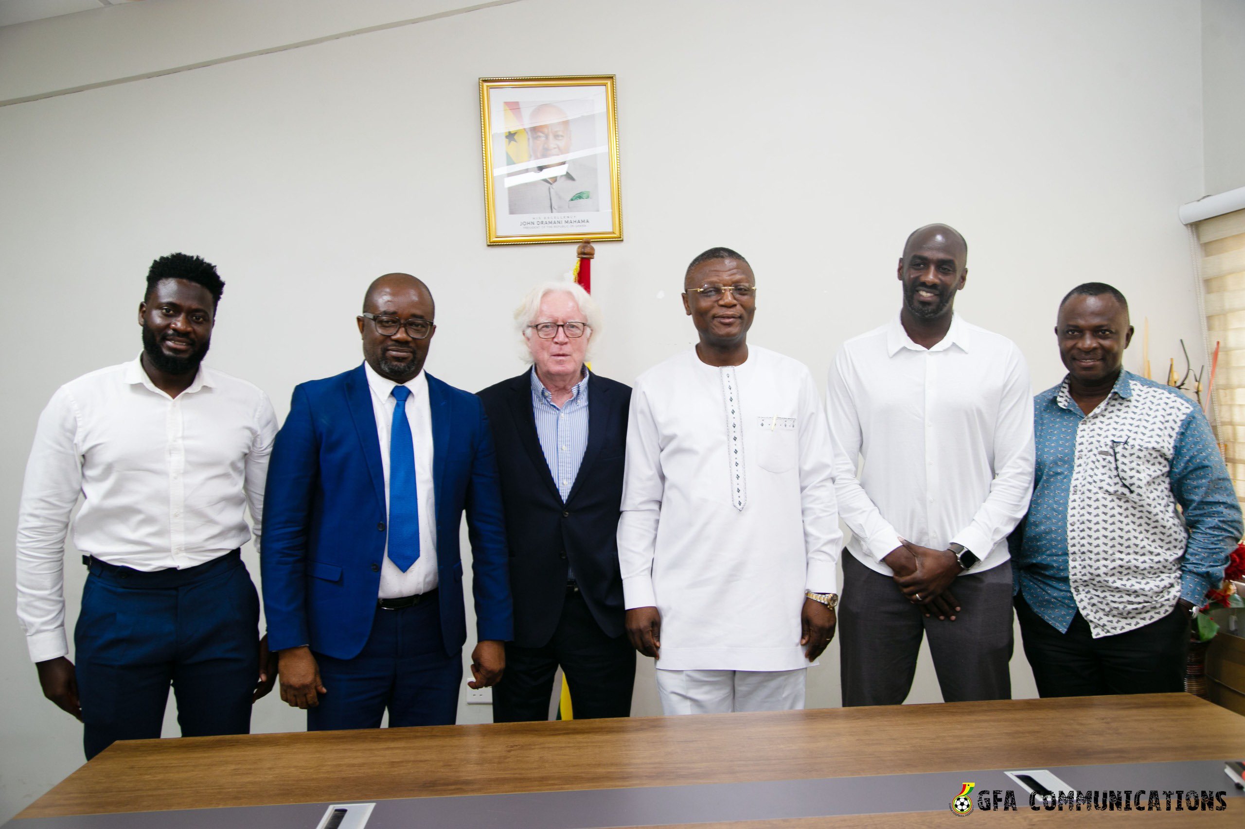 The GFA President Kurt Okraku introduced the members, Head Coach Otto Addo, Assistant coach Desmond Ofei and GFA Director of Football and Black Stars Technical Advisor, Winfried Schafer.