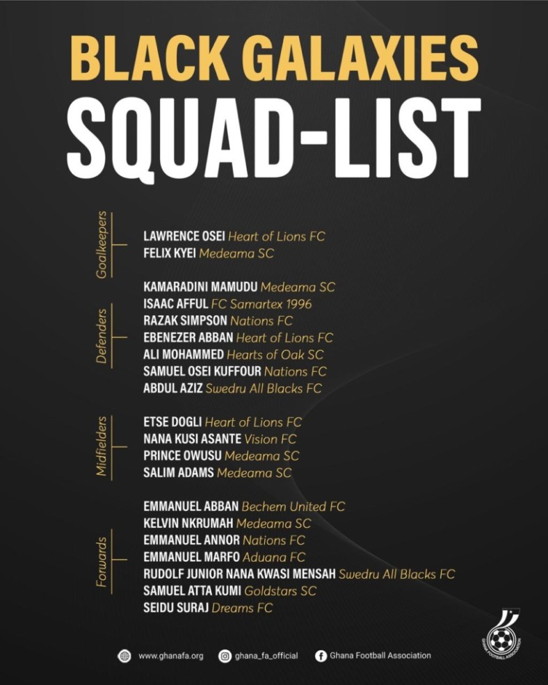 Ghana’s Black Galaxies will take on South Africa’s Bafana Bafana on December 16, 2025, in Gauteng