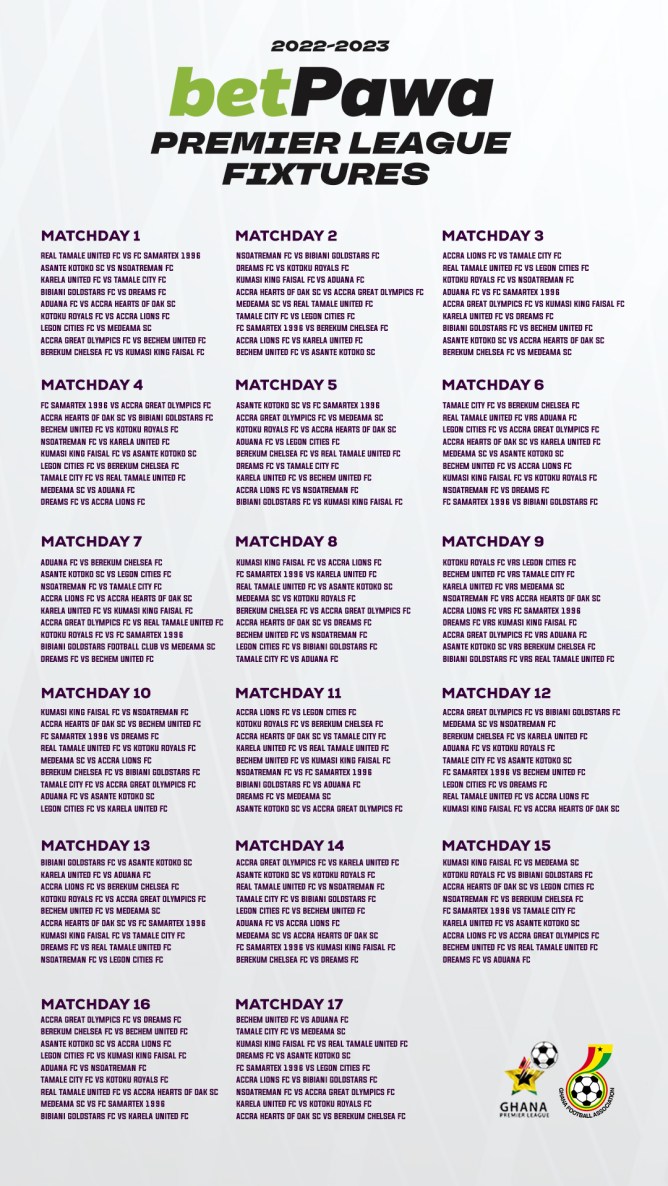 The 2022/23 betPawa Ghana Premier League will kick off on the weekend of Friday, September 9 to Monday, September 12 across the country.