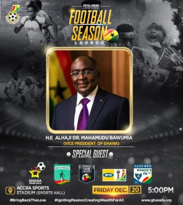 The Vice President, Dr. Mahamudu Bawumia will grace the launch of the 2019/2020 Ghana Football Season at the Accra Sports Stadium on Friday as the Special Guest.