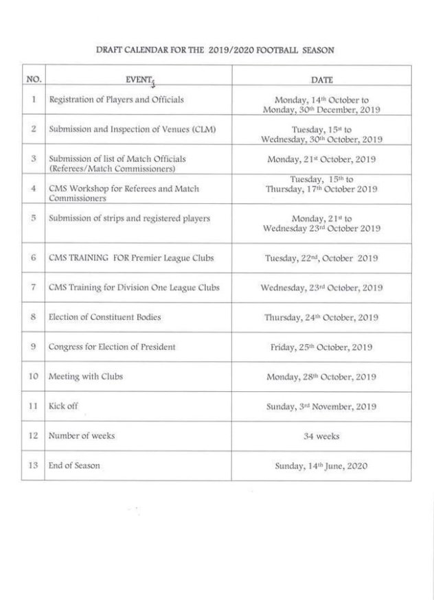 The 2019/20 Ghana Football season comprising the Ghana Premier League and Division One League will last for thirty-four weeks.